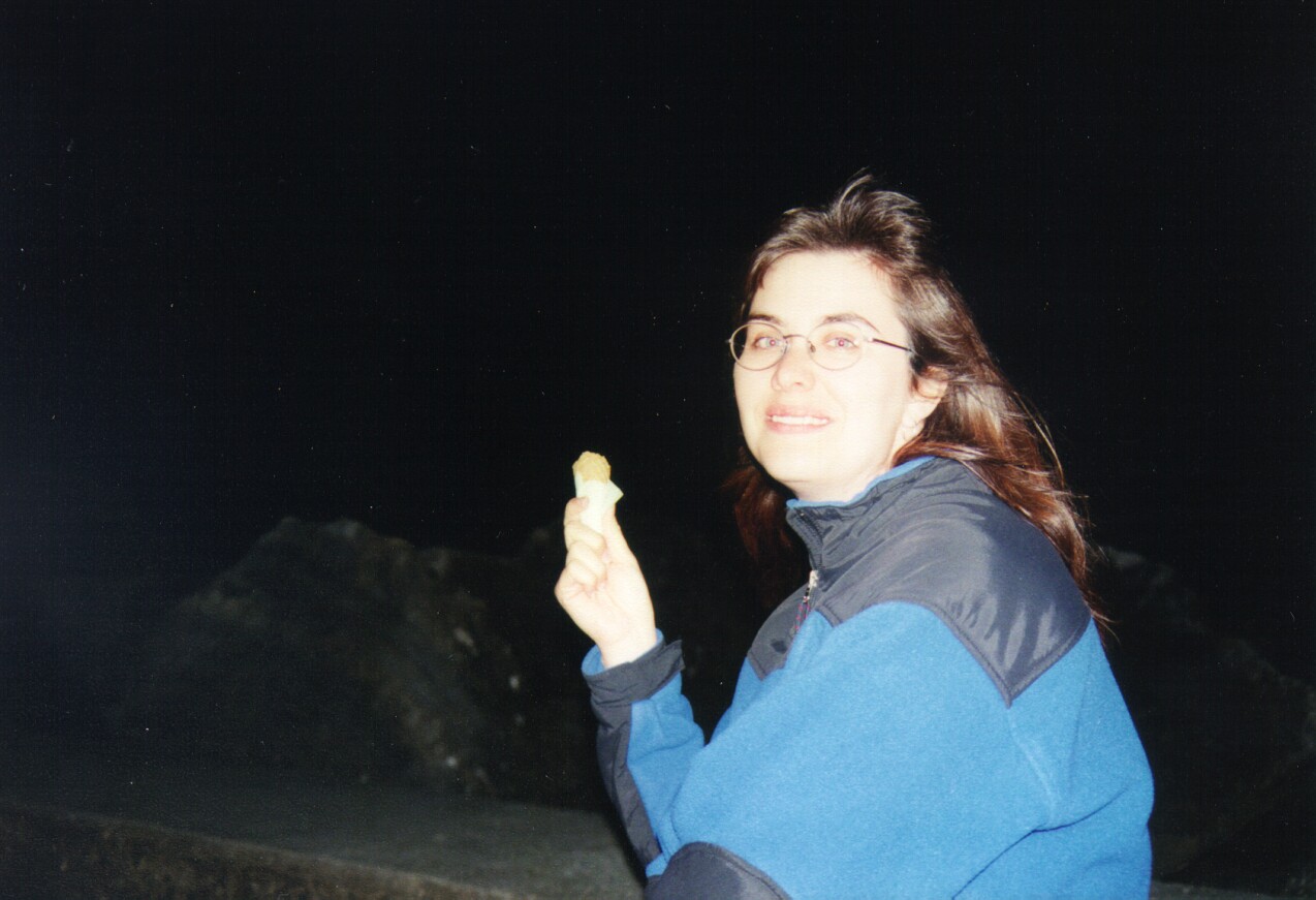 Leslie with Gelato at night