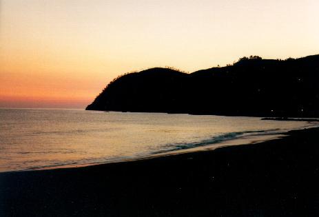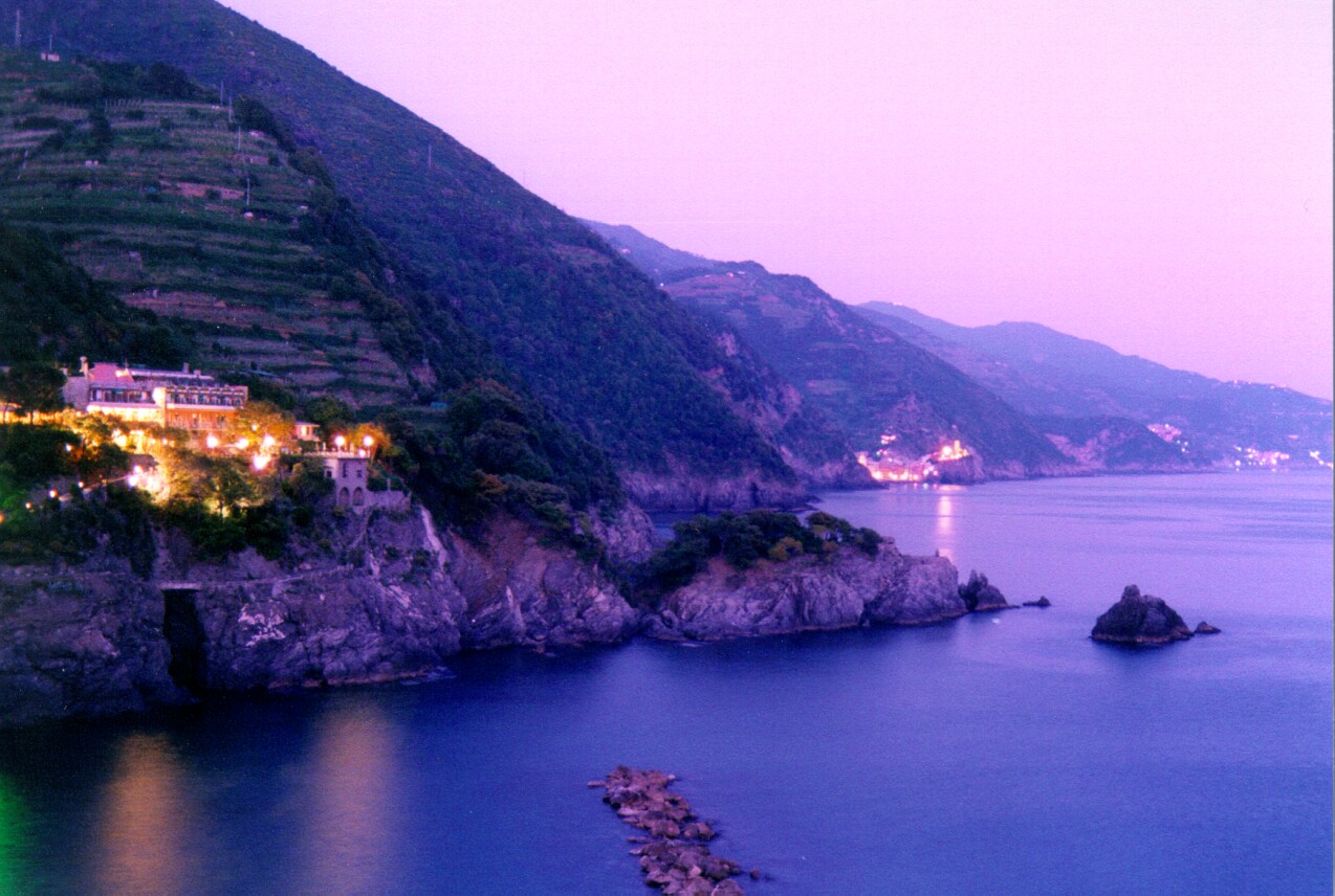 View toward Vernazza from Monterosso at sunset