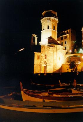 Vernazza church and fishing boats