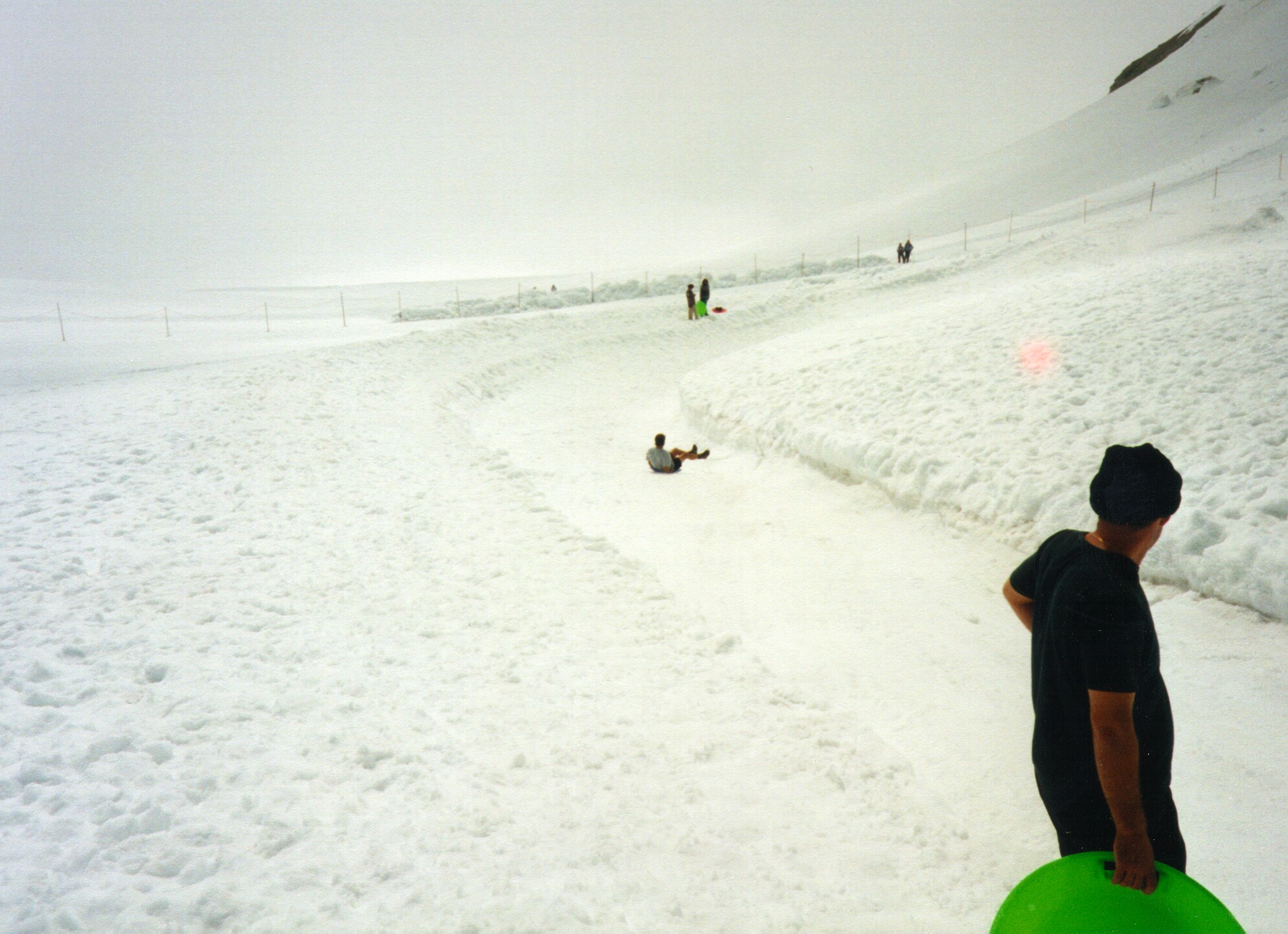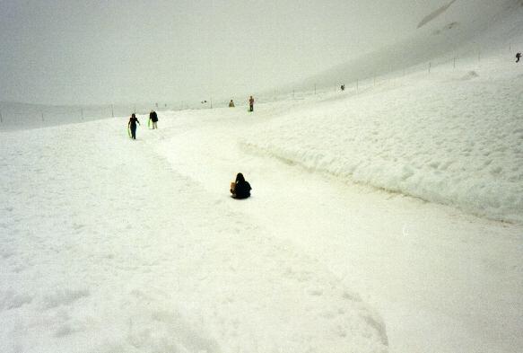 Leslie sledding on the Jungfrau glacier