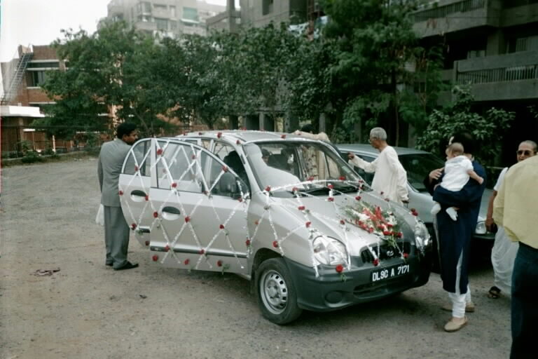 Spruced up car for the ride to the ceremony. (Also: Asit, AK's dad, Faiz & kid.)